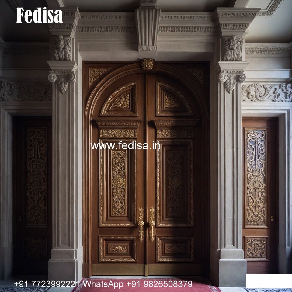 Carved Wooden Doors Front Door Glass Design No-10435
