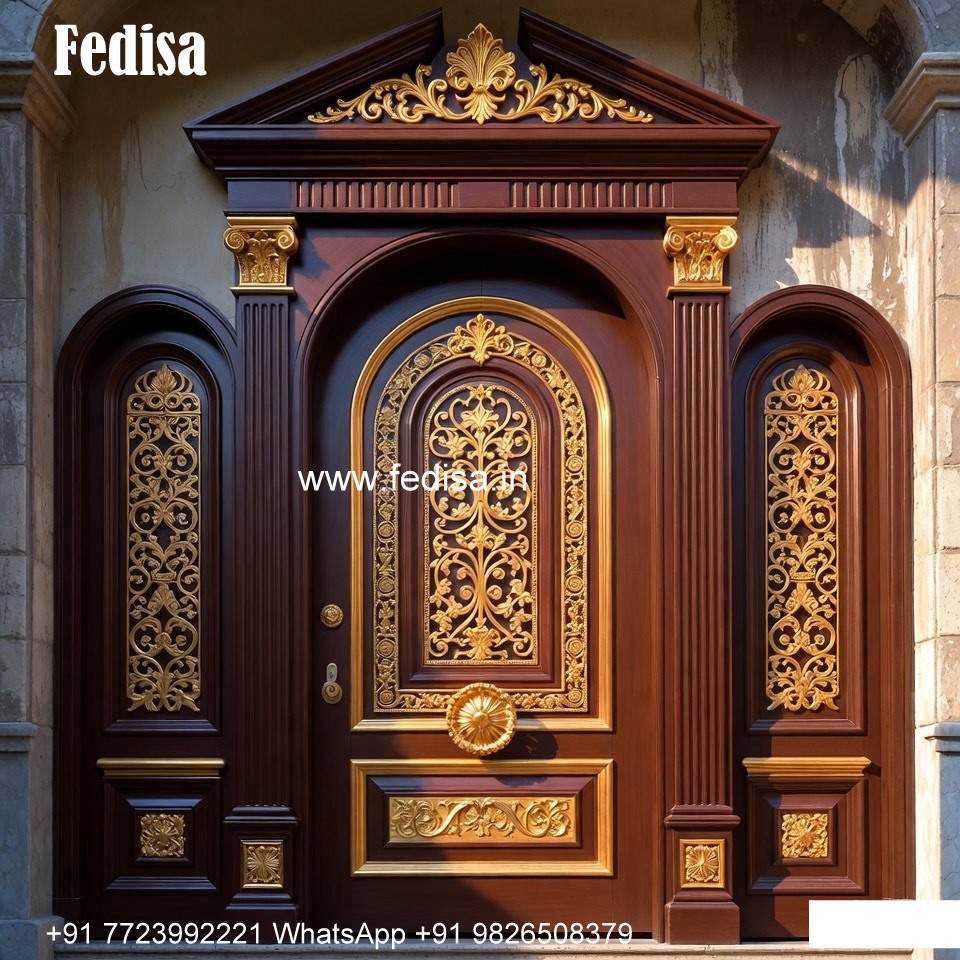 Engraved Wooden Door Kitchen Front Door Design No-7550
